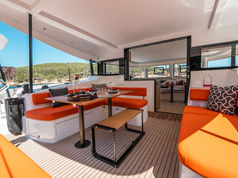 Inside, the open and contemporary design offers light-filled spaces and exceptional visibility. Her modern interior flows seamlessly into the cockpit, creating a vibrant and social atmosphere ideal for both relaxation and adventure. Whether at anchor or under sail, AQUILA captures the essence of modern sailing: freedom, excitement, and comfort in perfect harmony.
