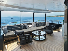 Apart from generous interior spaces, Bliss also has plenty of outdoor guest areas ideal for relaxation. Her large aft deck features exterior dining and seating, sun pads and a sunken seating area forward. On the upper deck a Jacuzzi and sauna can be found.