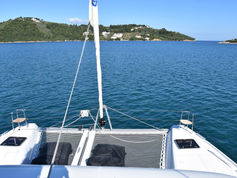 The Lagoon 42 is a pretty new model in the Lagoon family. While keeping a family resemblance and retaining the main features of the latest Lagoon generation, she features entirely new ergonomics that ensure an excellent use of space and ease of circulation on board. Numerous areas on deck invite to sun-bathing and socializing and a bathing platform makes getting in and out of the water easy and fun. The salon of the Lagoon 42 is exceptionally well-lit by natural light thanks to a vertical glazing in the coachroof. Moreover, all four double-bed cabins feature large windows that offer magnificent views of the surroundings. She is based in Marina Skiathos, which is the perfect starting marina if you wish to explore the beautiful Sporades islands, like Skiathos, Skopelos, Alonissos, and Skyros or the Gulf of Volos.